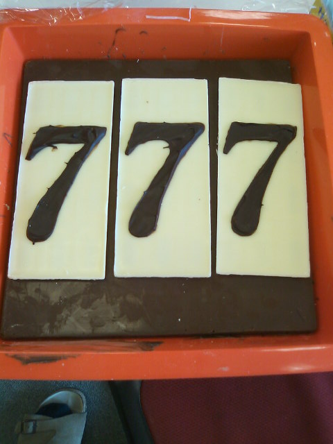 更にそのあとホワイトチョコの上にスリーセブンの777って文字を乗っけなきゃいけないっつーんで、