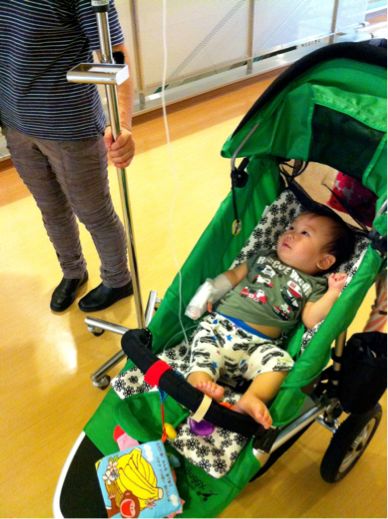 これは点滴打ちながら更にレントゲン室に移動中の様子。