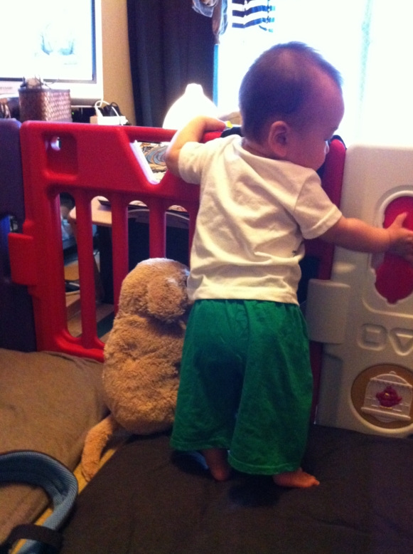 これはつかまらせてあげたんだけど、園では先生につかまって立ったりしたらしい。