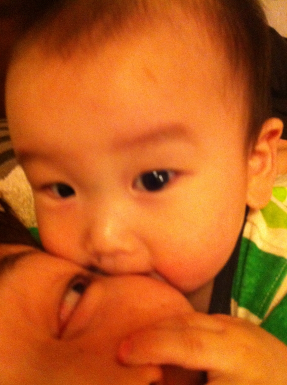 最近は片方のおっぱいを吸いつつ、片方の手でもう片方のおっぱいをまさぐるという完全なるエロおやじ化しております。
