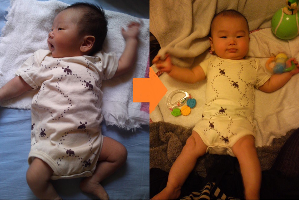 生後1カ月未満と、もーすぐで4カ月を比べてみました。
