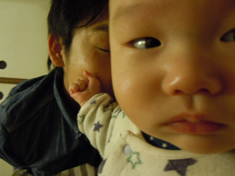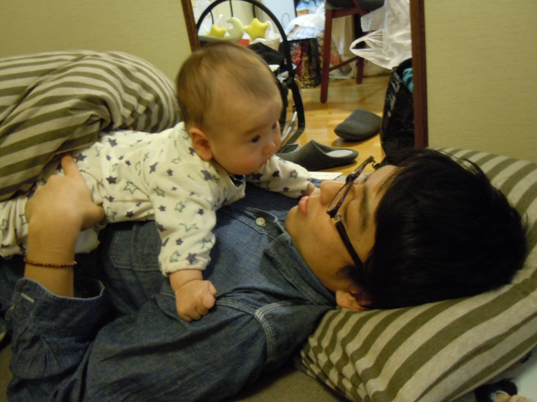 パパの上に乗っけても、前はクタ~ってなってたアタマが今はこんなに直立 笑