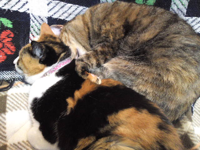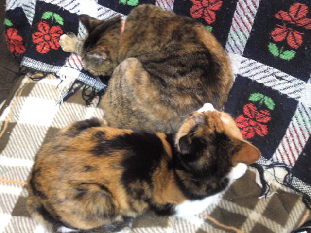 あんなに毛をまとってるのにやっぱり寒がりなヌコ様たち。