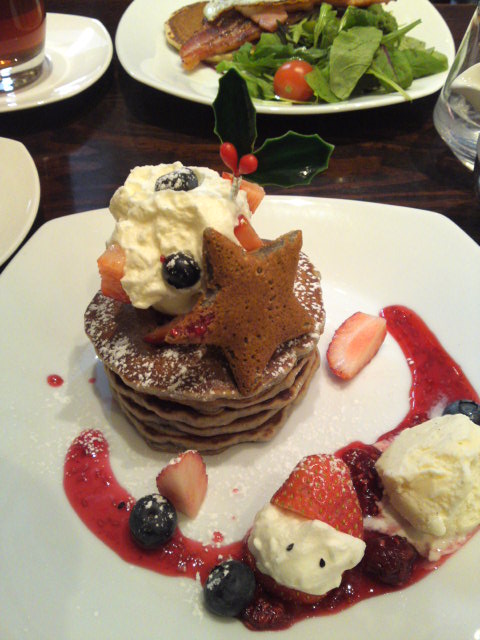 パンケーキのお店でクリスマス特別パンケーキを食べ。。