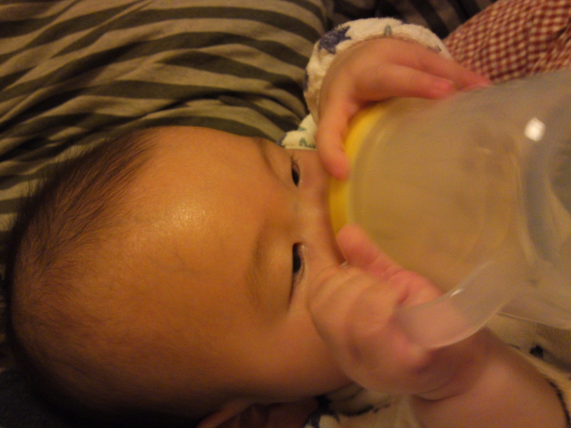 でもどんどん口の位置から飲み口ズレちゃって、結局ママレスキューが入りましたが~;