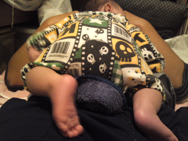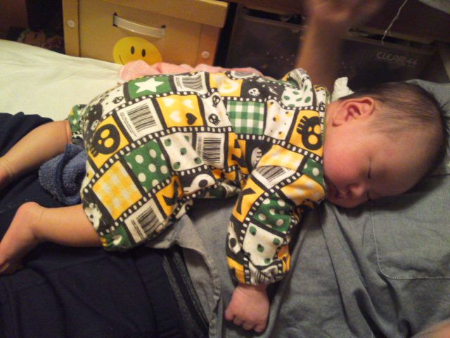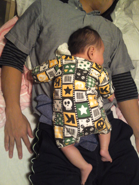 最近は、自分が眠いと横着して自分の上にテキトーにミナトを載せるパパ