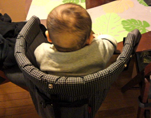 トイザらスにてベビーチェアを物色し、とりあえず外出時にも使えるようなテーブル取りつけ型のを買ってみた。