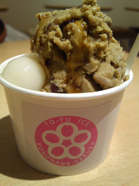 とうふアイス屋なるところで、ほうじ茶白玉アイスをいただく。