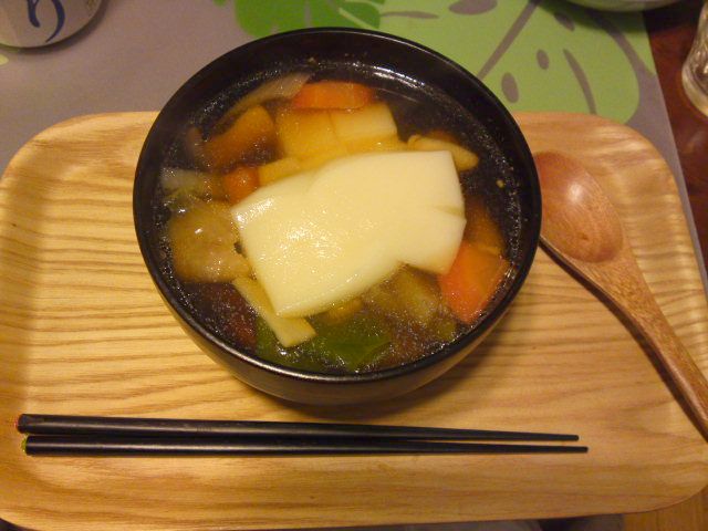 お正月おなじみのお雑煮を食べて落ち着かせる。