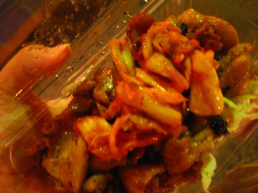 味噌とかにんにくで味付けして炒めた鶏皮を、キャベツの上にいっぱい乗っけてくれて更にトッピングでキムチ。